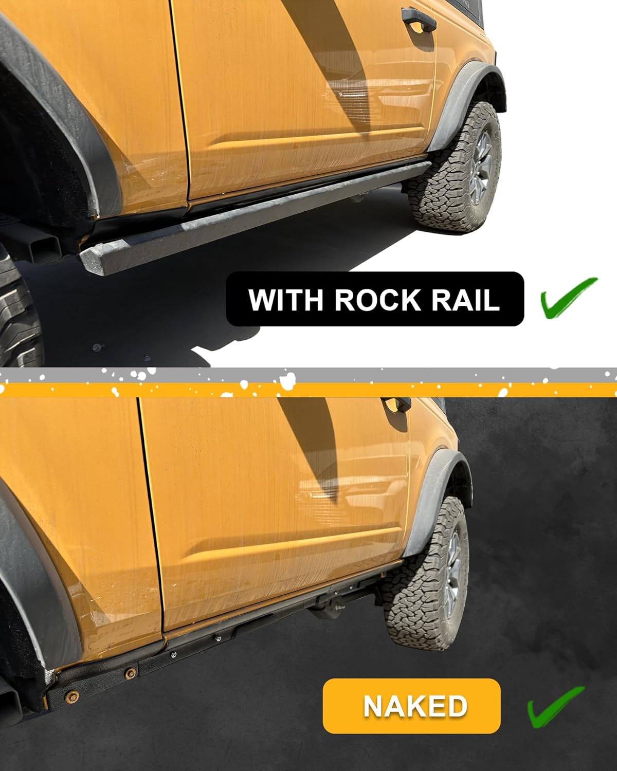 - Take measures to protect your vulnerable rocker panels before taking your 2021-2023 4-Door Ford Bronco out on the trail.