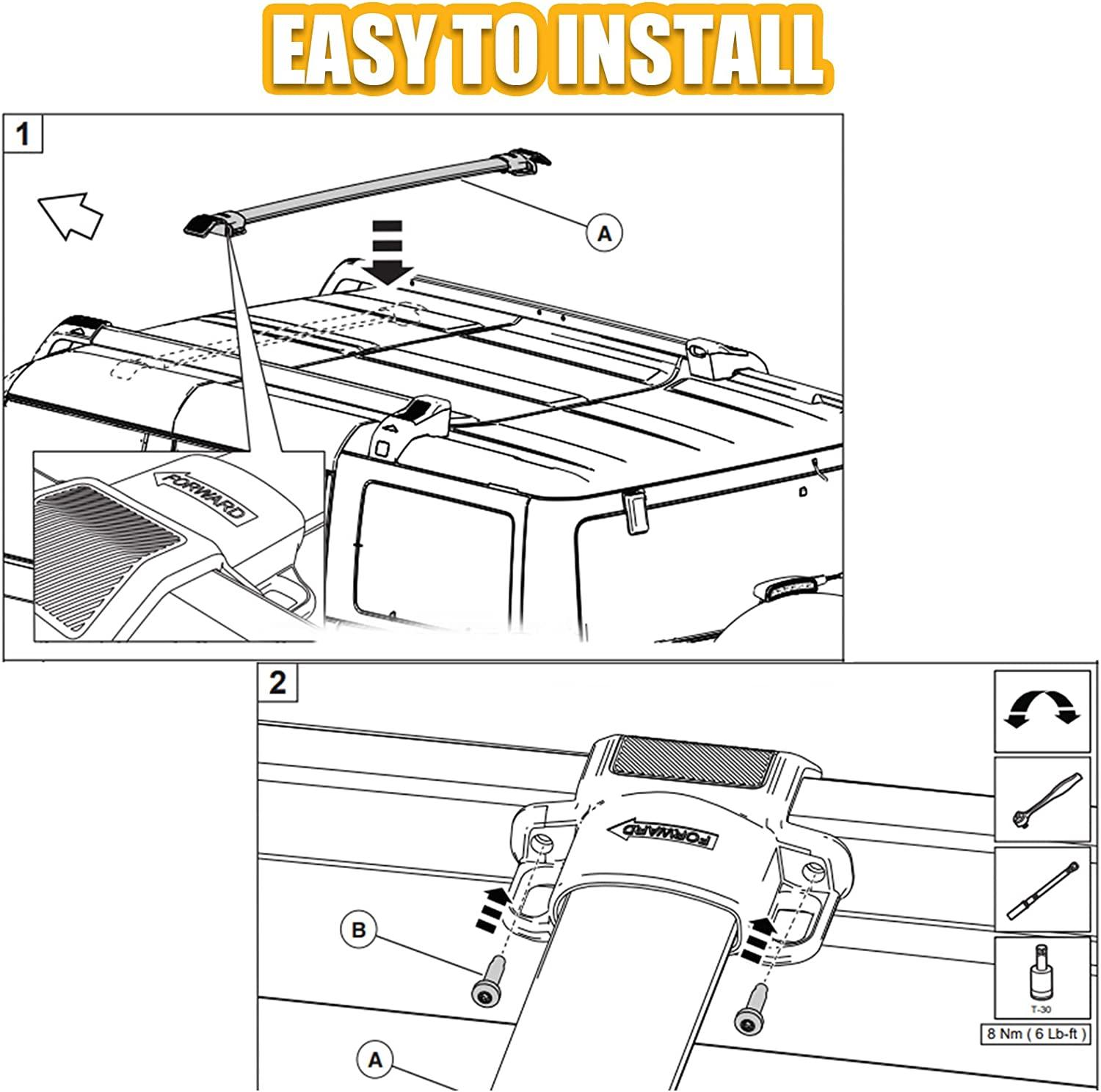 • EASY TO INSTALL: These crossbars can be fixed to the front or rear hole of the roof rails according to your need. Bolt-on installation, No drilling and no cutting.
