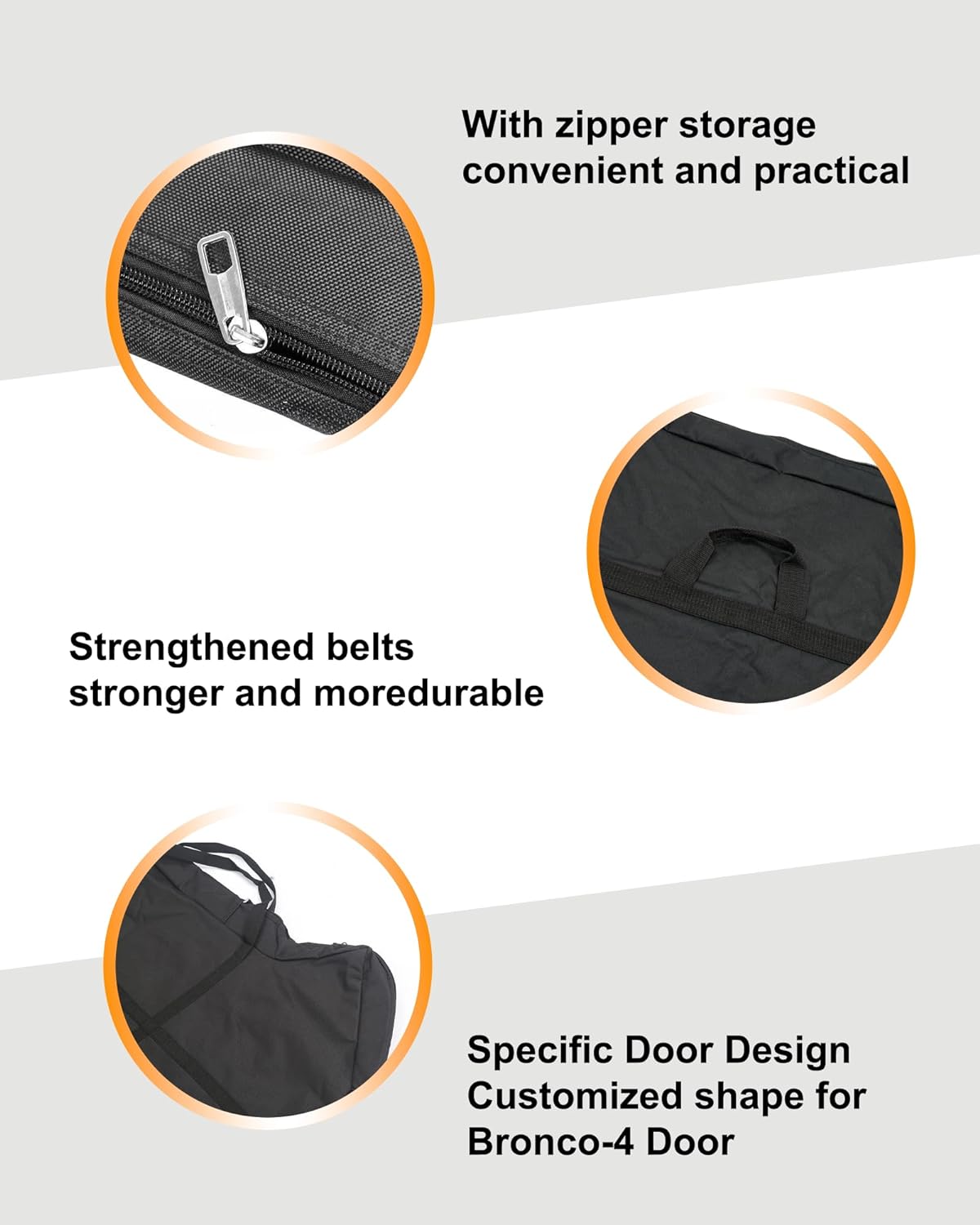 - DESIGN: Each door bag is designed with 3 carrying handles to make it easier to lift and carry your doors.Simply unzip the bag, slide it over the open door and partially zip it back up to secure it to the door. Your door is now fully protected while you remove the hinge bolts.