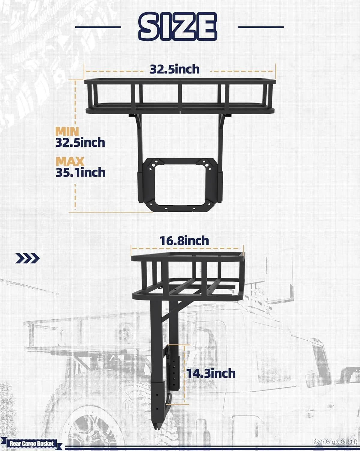 • Expansion Space: Tailgate Cargo Basket make full use of the spare tire upper space.Easily load a variety of items such as luggage, camping gear, fuel, water and other necessities.