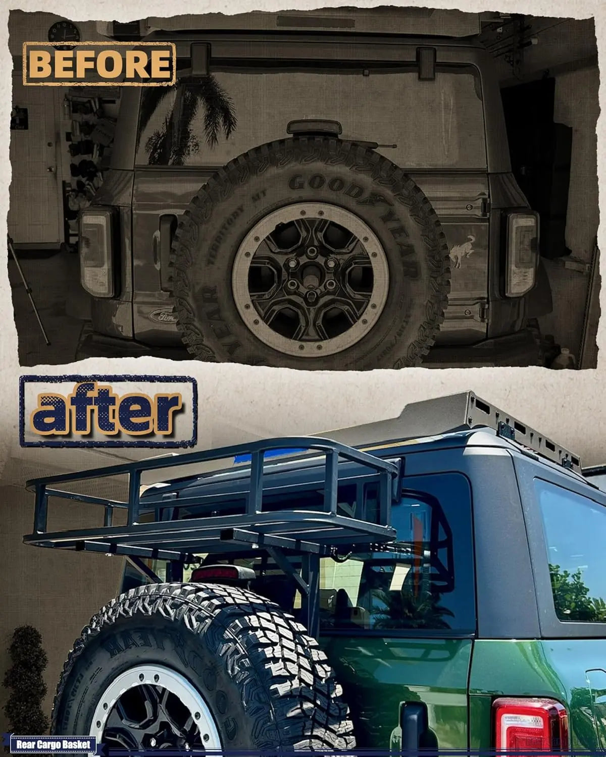 • Perfect Fit: Broaddcit Spare Tire Basket is compatible with Ford Bronco 2021 2022 2023 2024 models 2-door/4-door. Additionally, the spare tire basket offers multiple height adjustments to accommodate different tire sizes.