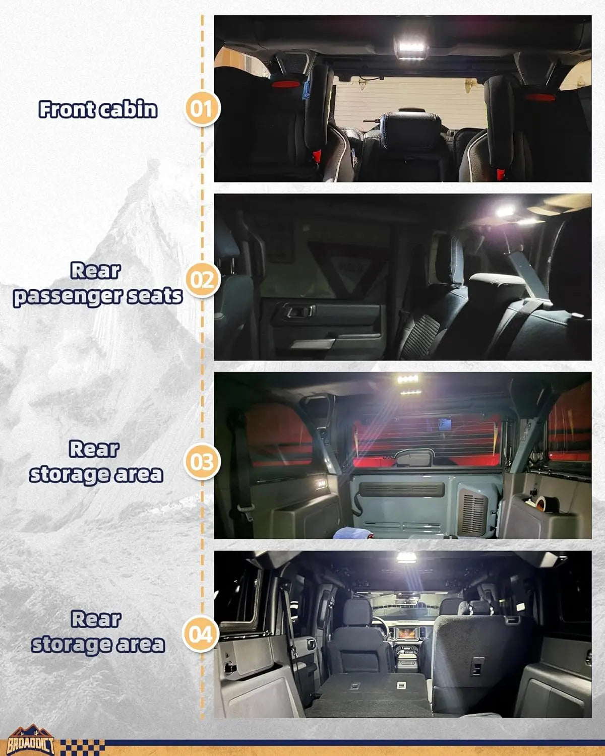 - Perfect fit: Ceiling light perfect fit for Ford Bronco 4-Door 2021 2022 2023 2024 2025(Not fit for 2-Door or Bronco Sport models)