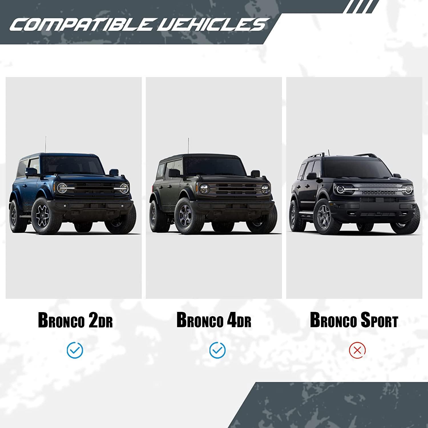 • PERSONALIZED NEEDS: Not only can you install full-size light bars, you can also install off-road lights on the base of the upper windshield to meet your different driving needs. Two locations for LED lights are provided on each side. Create your own BRONCO.