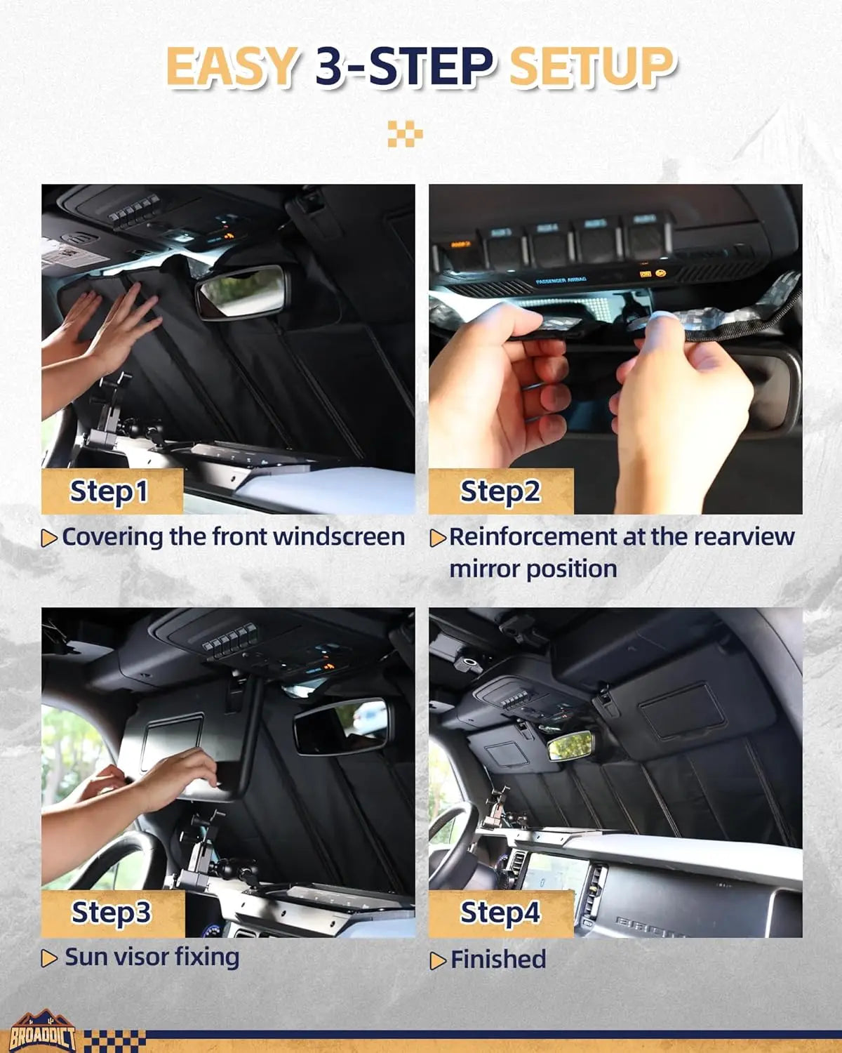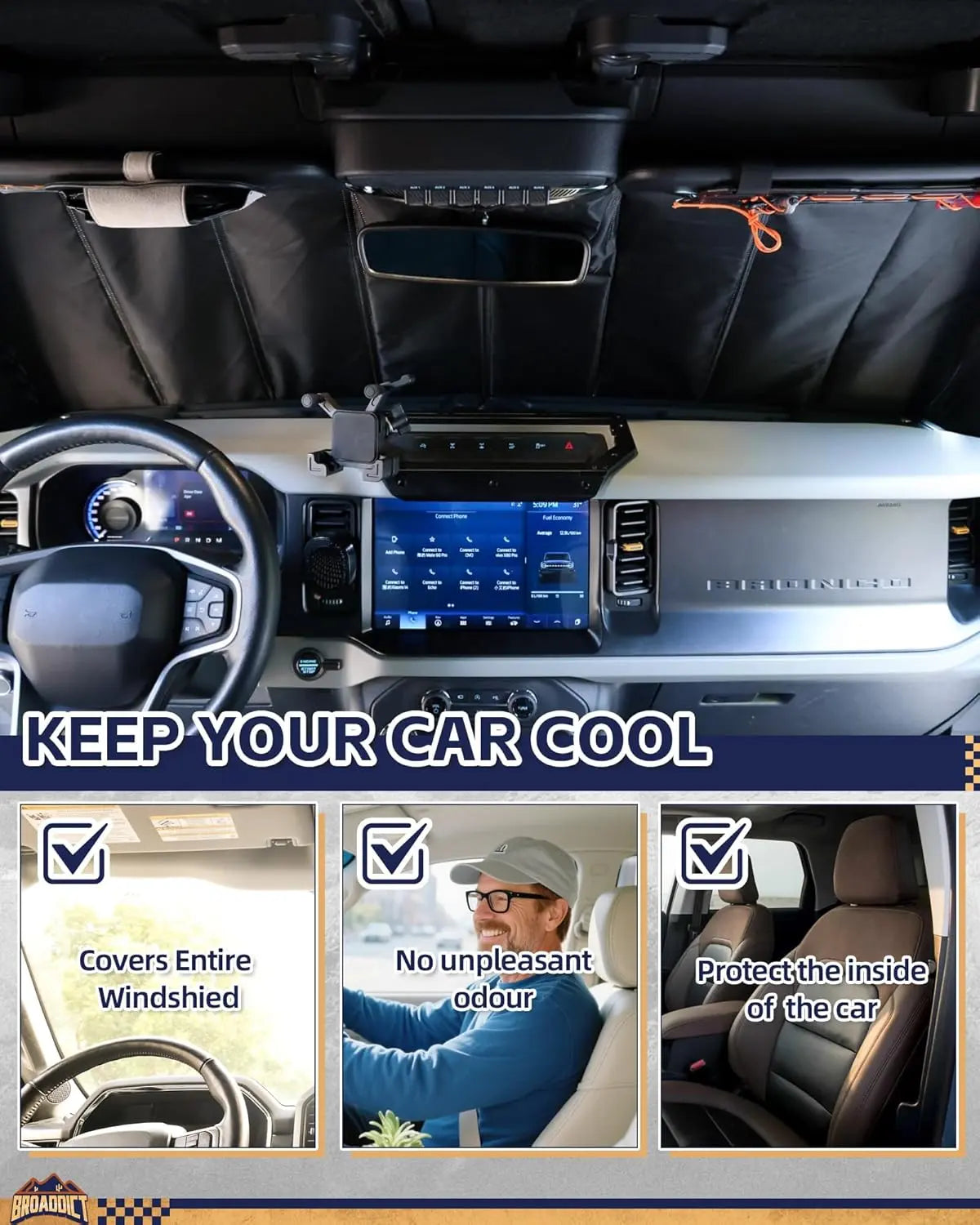 Broaddict Windshield Sunshade Fit for Ford Bronco 2021-2025 Foldable Front Sunshade Protector Accessories